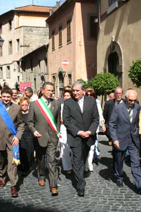 Prima del tradizionale giro delle sette chiese, il rituale saluto, quest’anno alla presenza di ministro che gioca in casa, Giuseppe Fioroni.