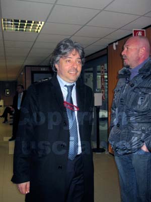 Paolo Esposito era presente in aula, vestito con una maglione blu a girocollo e un giubbotto beige. Visibilmente dimagrito per lo sciopero della fame e della sete che sta portando avanti ormai da una settimana. Accanto a lui i suoi avvocati, Enrico Valentini e Mario Rosati.